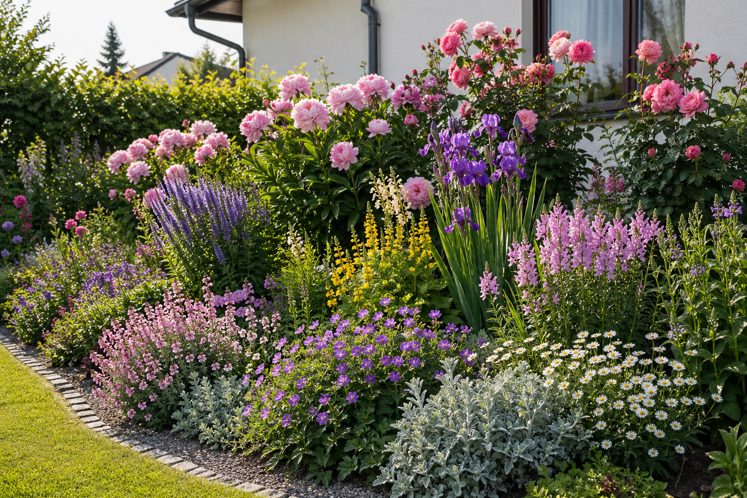 Do tejto skupiny môžeme zaradiť napríklad pakosty (Geranium), veroniky (Veronica), brunery (Brunnera), čemerice (Helleborus), kosatce (Iris), pivonky (Paeonia), klinčeky (Dianthus), astilby (Astilbe), ruže (Rosa), hortenzie (Hydrangea), starčeky (Senecio), prilbice (Aconitum), čerkáče (Lysimachia) či fizostégie (Physostegia).